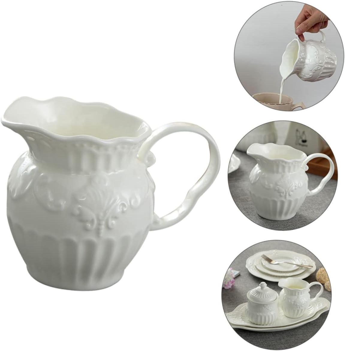 Package Include 1 x milk pot 1 x sugar jar Features - Size: About 11.00X9.50X9.50cm/4.32X3.73X3.73inch ceramic dip bowls. - Material: Ceramic creamer dispenser. - Color: White small coffee creamer. - Our frothing cup could last for a term, durable enough gravy. - Fashionable and elegant design, it matches with the many kinds of kitchen decor styles candy bar containers. - Our cup is , high performance but is more reasonable glass containers with lids. - Applicable to a variety of items, such as coffee, milk, ice cream, pudding etc espresso steaming pitchers. - Also can be a good housewarming for your friends, they will like it coffee container. Goods Description decor Made of premium material for your durable and practical use.salt container with lid Creative shape design and easy to grab handle makes it easy for you to catch.ceramic sugar container Are you looking for a novel and practical frothing cup set? If yes, our frothing cup and coffee candy jar might be your best choice