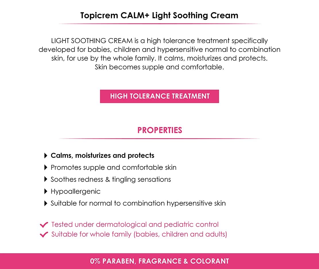 The Topicrem UH FACE CALM+ Light Soothing Cream face cream will give your face exactly the care it deserves every day. Characteristics: soothes irritation and redness moisturises intensely nourishes deeply it protects the skin against harmful external influences is absorbed quickly non-comedogenic product dermatologically tested
