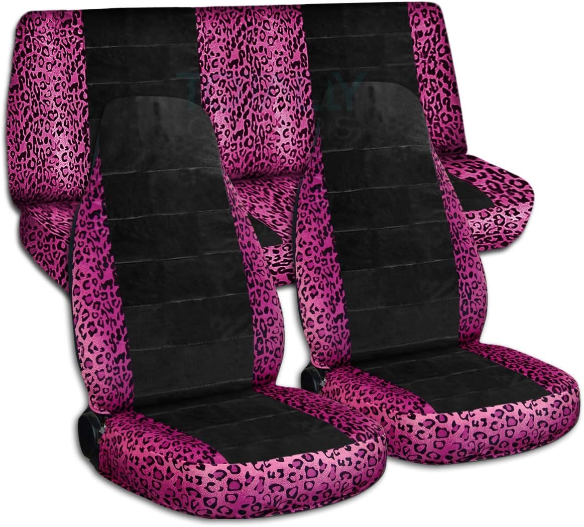 A full set of front and rear, pink snow tiger and black seat covers for cars, trucks, vans, RV or SUV. Be sure to visit our storefront ("Totally Covers") where you can find the largest selection of seat covers, to satisfy even the most demanding of tastes. If you can't find what you are looking for, please contact us ("Totally Covers") We can make seat covers for ANY car, truck, van, RV or SUV in a variety of 145 colors and prints, and even add your name/text and logo/design on them!