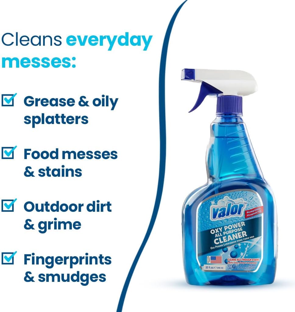 VALOR Oxy Cleaner Trigger Sprayer harnesses the power of oxygen to break down and remove tough stains, soap scum, and dirt across multiple surfaces. From kitchen counters to bathroom tiles, this versatile cleaner delivers sparkling results without harsh chemicals. The convenient trigger design ensures precise application, making your cleaning routine faster and more effective.