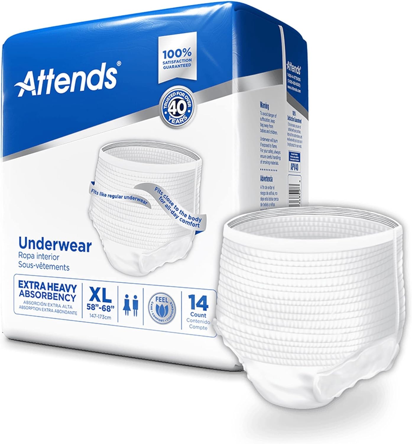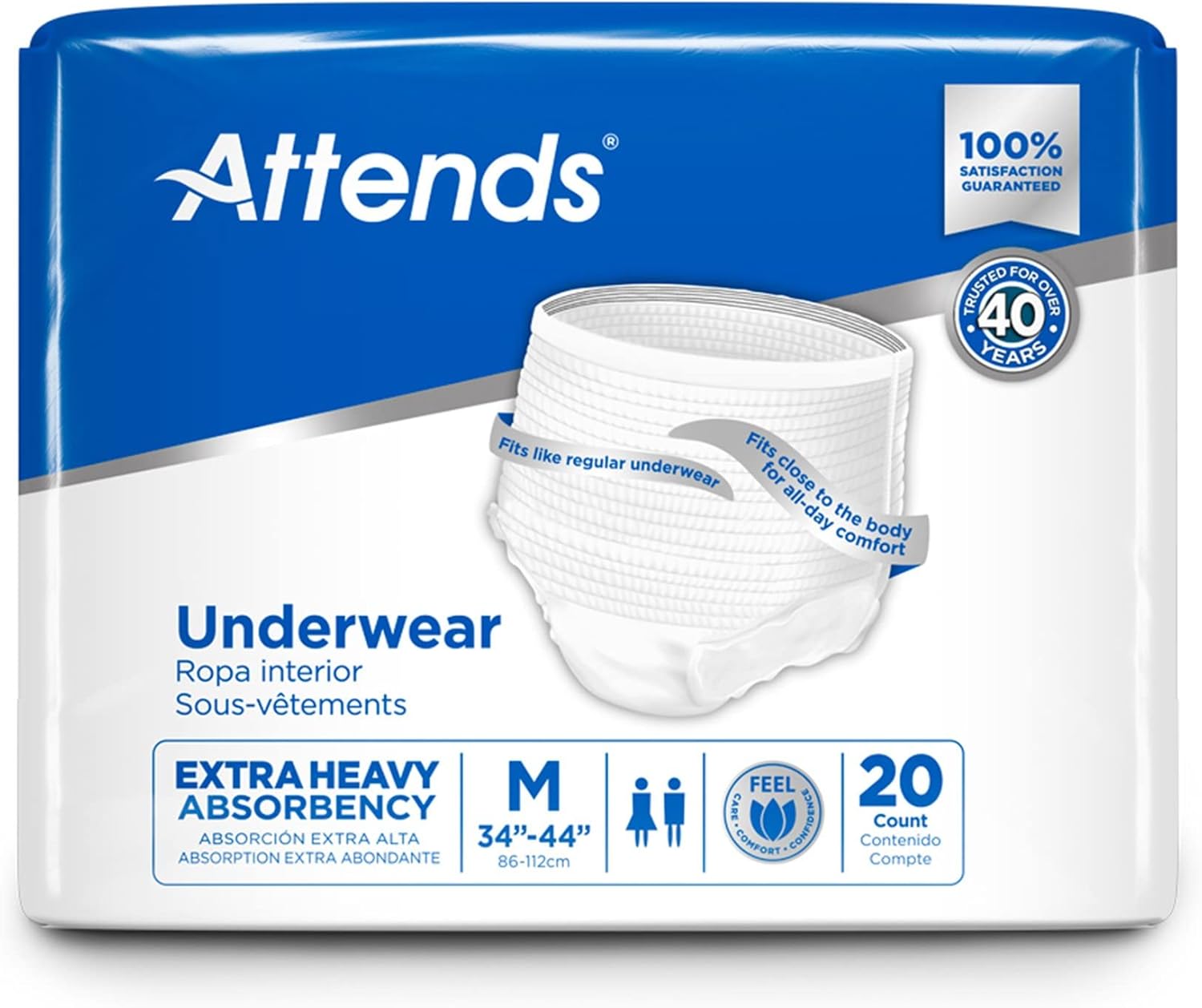 Attends Protective Underwear are worn under clothing like regular underwear and provide an alternative to briefs for active and mobile individuals. This premium product is designed with a soft, Breathable Zones, which helps promote skin wellness. ConfidenceCuff Protection helps prevent leaks around the legs, and the Super Absorbent Core helps pull wetness away from the skin to keep you dry. Attends Advanced Underwear is recommended for moderate to heavy incontinence. Tear-away side panels make removal fast and easy.