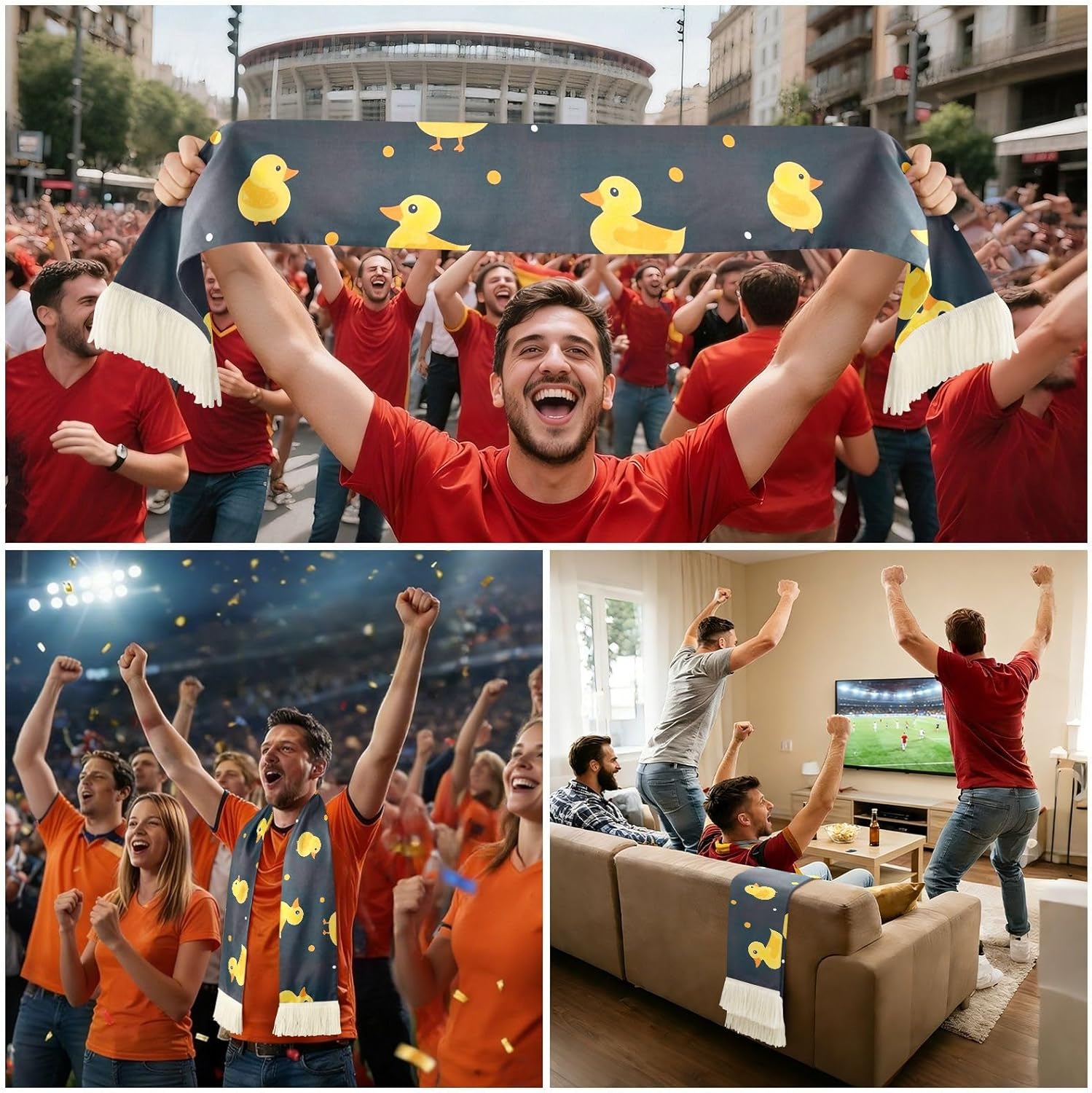 Sports fan scarf for match days, fan gatherings, and home viewing, made from 100 percent polyester with a soft brushed feel and fast drying performanceSoccer scarf design shows your support with a clean white base, clear printed graphics, and fringe ends that add a stadium lookPolyester scarf material is absorbent and light, so it can help wipe sweat when the crowd heats up and still stay comfortable to wear while cheeringFan scarf is easy to use in daily events, supporter meetups, and team parties, giving friends and family a simple way to show unity and atmosphereCare is straightforward, wash with water below 40 C, avoid bleach, do not soak for a long time, and use hand wash or gentle machine wash for routine cleaning