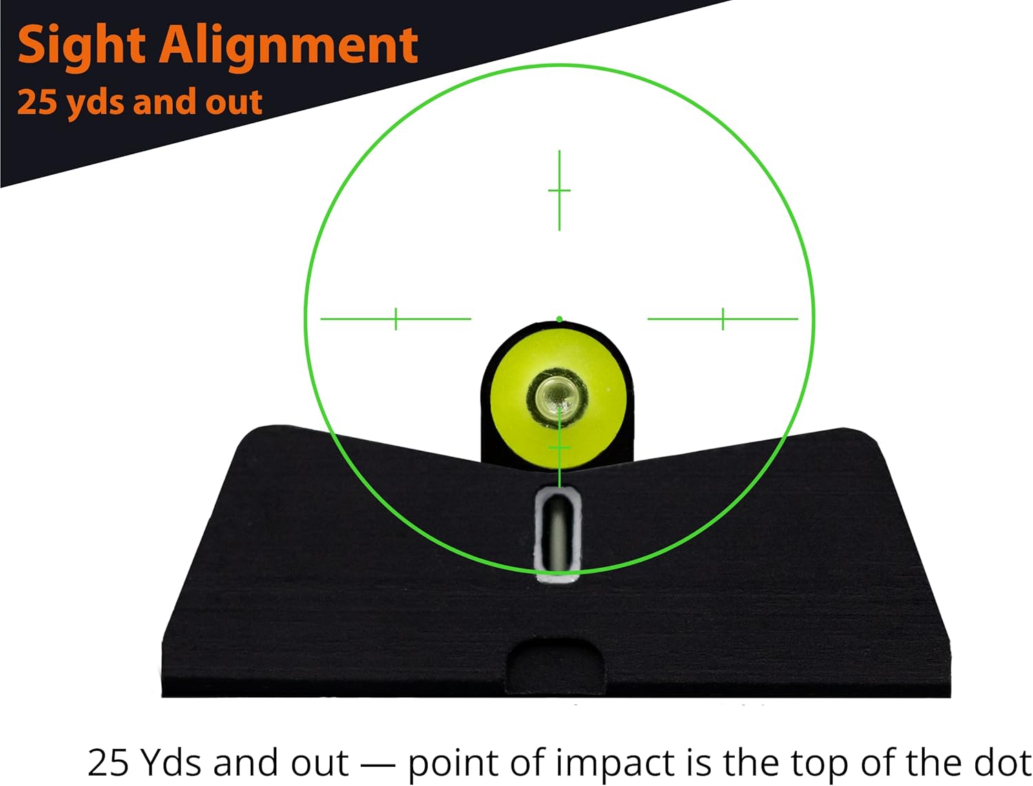 XS DXT2 Big Dot Night Sights offer the best front sight visibility in all lighting conditions. DXT2 Big Dot sights drive focus to the front sight using a high-contrast front and a V-notch rear for an unobstructed view of the front sight. DXT2 Big Dot front sights use a patent pending glow dot that absorbs light and glows in low light levels before it is dark enough to see the tritium. Optic Orange is designed to offer a high-contrast sight picture when shooting in bright light conditions and maintain its visibility in decreasing light levels. To ensure visibility in low light when uncharged, optic orange is primarily based on yellow with a hint of red. The increased surface area of the convex dot increases light absorption, intensifying the charge of the glow properties of the dot. The dot-the “I” sight picture, with a tritium dot in the front sight and a tritium bar in the rear, prevents confusing the front and rear sight in high-stress situations. In most gunfights, the victim and attacker are both moving and the victim’s focus is drawn to the threat. The wide field of view increases visibility of the front sight and of the threat downrange. Features: - Big Dot: Remains visible under stress when focus is drawn downrange. Outside diameter 0.188" - Orange Front Sight: High-contrast color designed for maximum visibility in bright to low light - Glow Dot: Convex photo luminescent dot absorbs light and glows in low light levels - Tritium Powered Front & Rear Sight: Glows in low light to aid in sight alignment - V-Notch Rear: Low-profile V provides greater visibility of objects downrange of front sight - Dot-the-"I" Sight Picture: Straight line sight picture with differentiated front and rear sight prevents shooters from confusing the front and rear sight - Rear Sight White Outline: Aids in rear sight identification for proper sight alignment - Rear Sight Ledge: Aids in one-handed slide manipulations Specifications: - Type: DXT2 Big Dot Orange - Glock 20,21,29,30,30S,37,41 - Fits: In common holsters - Installation might require filing to fit sight to dovetail; do not use sight press/pusher tool - Shipping Weight: 0.15 lbs.